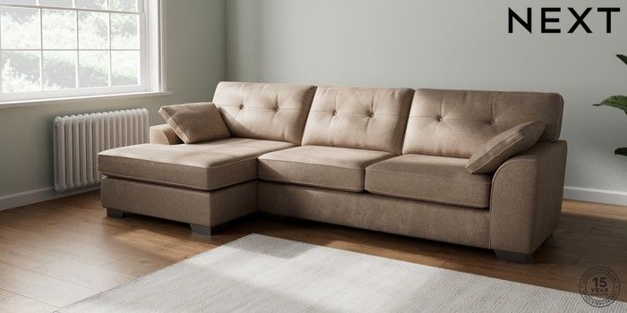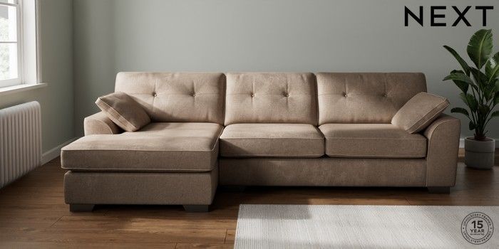 7.2.10 Stamford Buttoned Back Large Sofa Chaise - Left Hand Plush Chenille Mid Natural Large Square Angle - Gunmetal | Made Click here to use our website with more accessibility support, for example screen readers