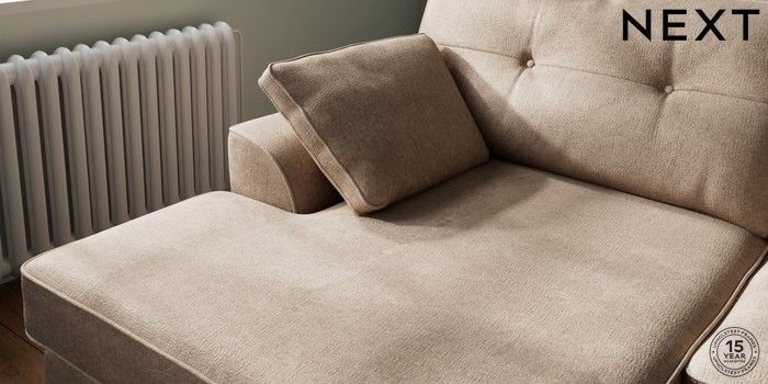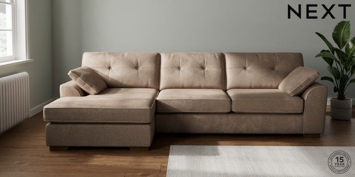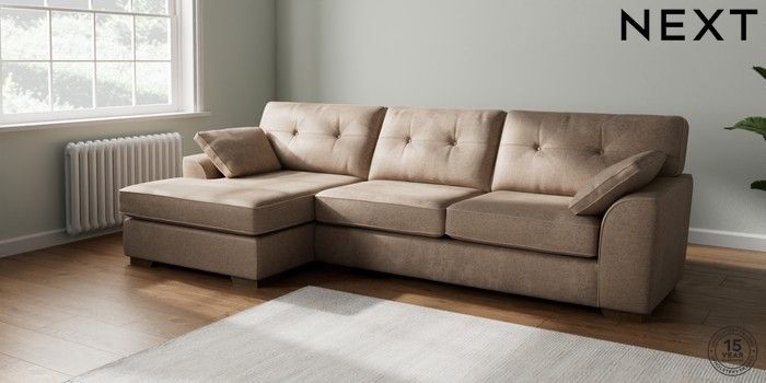 7.2.10 Stamford Buttoned Back Large Sofa Chaise - Left Hand Plush Chenille Mid Natural Large Square Angle - Mid | Made Click here to use our website with more accessibility support, for example screen readers
