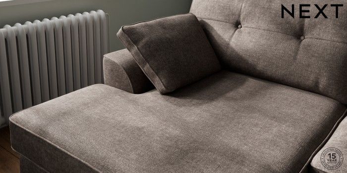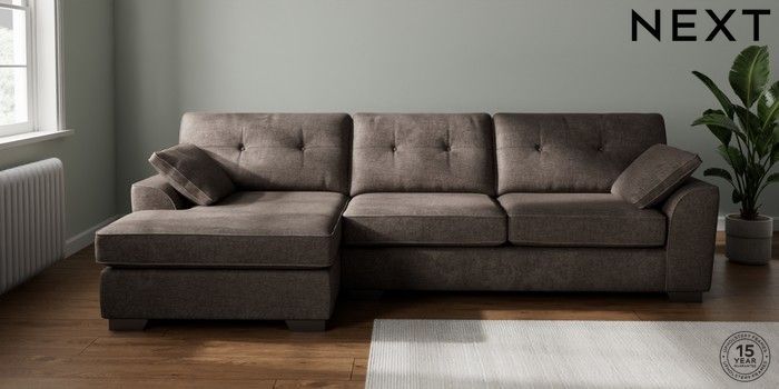 7.2.10 Stamford Buttoned Back Large Sofa Chaise - Left Hand Plush Chenille Mink Brown Large Square Angle - Gunmetal | Made Click here to use our website with more accessibility support, for example screen readers