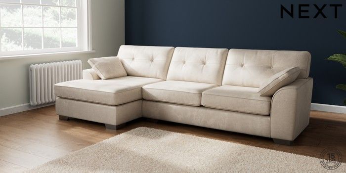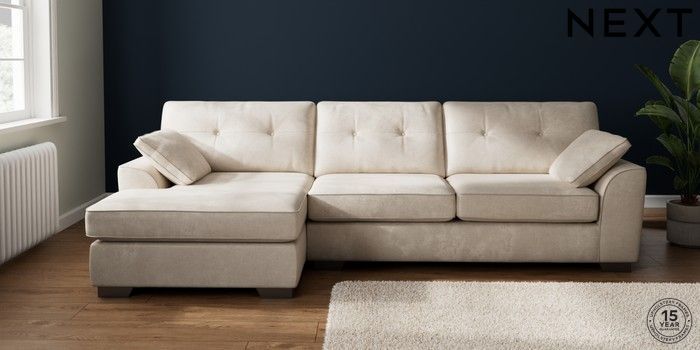 7.2.10 Stamford Buttoned Back Large Sofa Chaise - Left Hand Plush Chenille Oyster Large Square Angle - Gunmetal | Made Click here to use our website with more accessibility support, for example screen readers