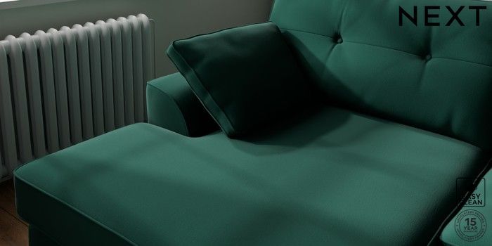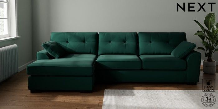 7.2.10 Stamford Buttoned Back Large Sofa Chaise - Left Hand Plush Velvet Easy Clean Bottle Green Large Square Angle - Dark | Made Click here to use our website with more accessibility support, for example screen readers