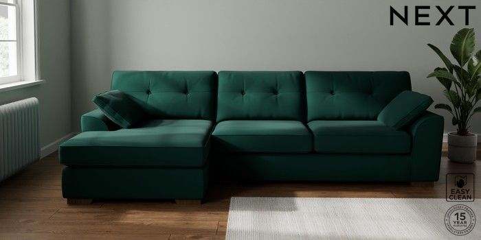 7.2.10 Stamford Buttoned Back Large Sofa Chaise - Left Hand Plush Velvet Easy Clean Bottle Green Large Square Angle - Mid | Made Click here to use our website with more accessibility support, for example screen readers