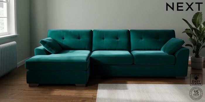 7.2.10 Stamford Buttoned Back Large Sofa Chaise - Left Hand Plush Velvet Easy Clean Juniper Green Large Square Angle - Gunmetal | Made Click here to use our website with more accessibility support, for example screen readers