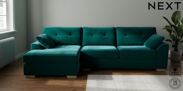 7.2.10 Stamford Buttoned Back Large Sofa Chaise - Left Hand Plush Velvet Easy Clean Juniper Green Large Square Angle - Light | Made Click here to use our website with more accessibility support, for example screen readers