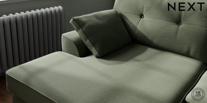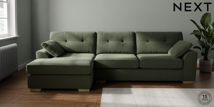7.2.10 Stamford Buttoned Back Large Sofa Chaise - Left Hand Relaxed Linen Look Dark Green Large Square Angle - Light | Made Click here to use our website with more accessibility support, for example screen readers