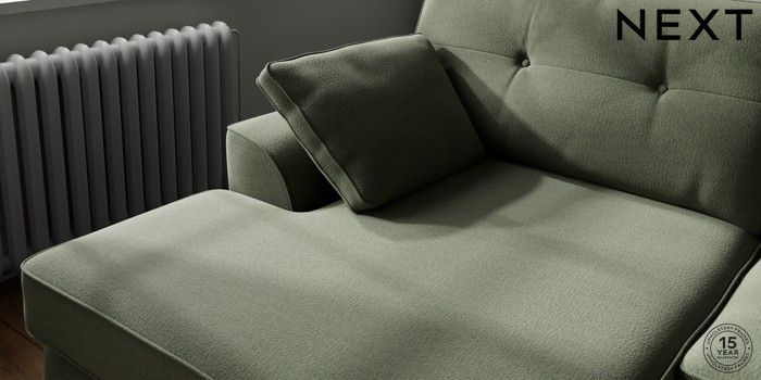 7.2.10 Stamford Buttoned Back Large Sofa Chaise - Left Hand Relaxed Linen Look Dark Green Large Square Angle - Mid | Made Click here to use our website with more accessibility support, for example screen readers