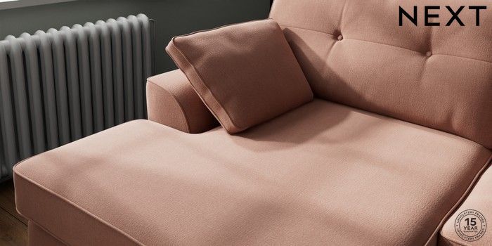 7.2.10 Stamford Buttoned Back Large Sofa Chaise - Left Hand Relaxed Linen Look Light Rust Brown Large Square Angle - Brushed Brass | Made Click here to use our website with more accessibility support, for example screen readers