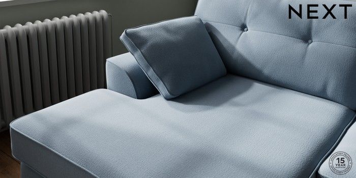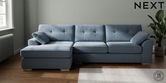 7.2.10 Stamford Buttoned Back Large Sofa Chaise - Left Hand Relaxed Linen Look Mid Blue Large Square Angle - Light | Made Click here to use our website with more accessibility support, for example screen readers