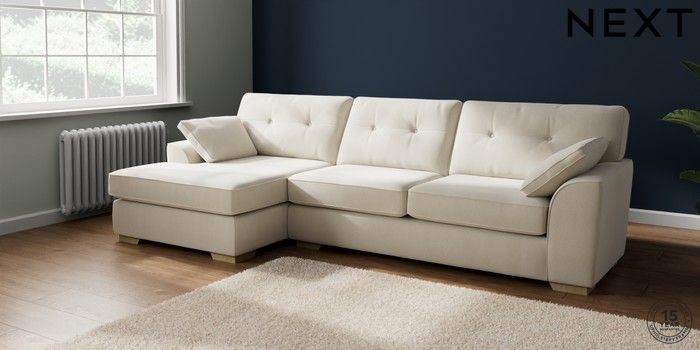 7.2.10 Stamford Buttoned Back Large Sofa Chaise - Left Hand Relaxed Linen Look Oyster Large Square Angle - Light | Made Click here to use our website with more accessibility support, for example screen readers