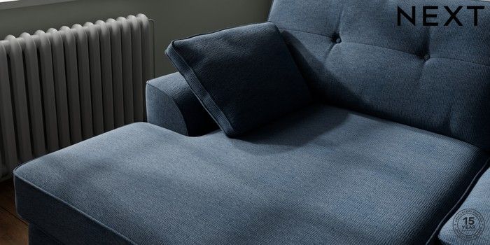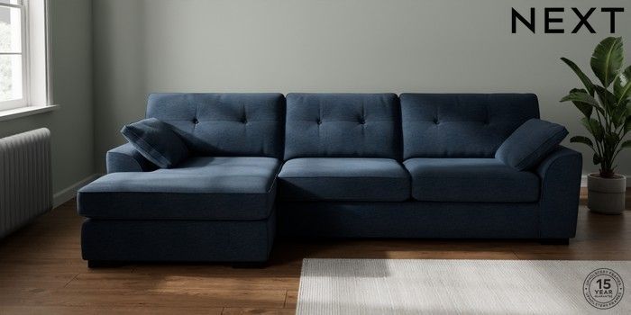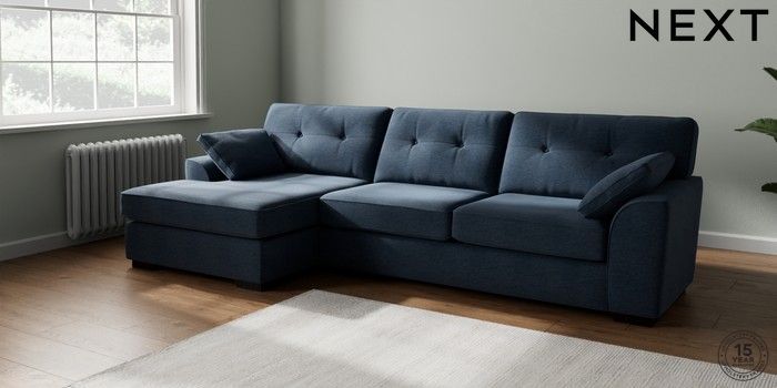 7.2.10 Stamford Buttoned Back Large Sofa Chaise - Left Hand Ripple Chenille Dark Blue Large Square Angle - Dark | Made Click here to use our website with more accessibility support, for example screen readers
