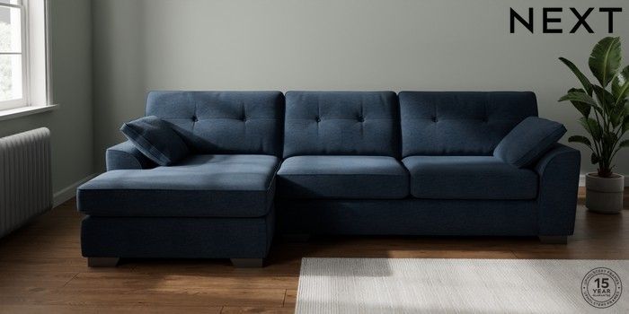 7.2.10 Stamford Buttoned Back Large Sofa Chaise - Left Hand Ripple Chenille Dark Blue Large Square Angle - Gunmetal | Made Click here to use our website with more accessibility support, for example screen readers