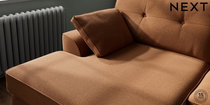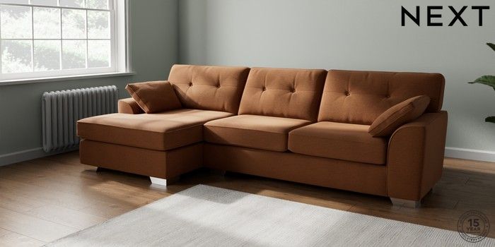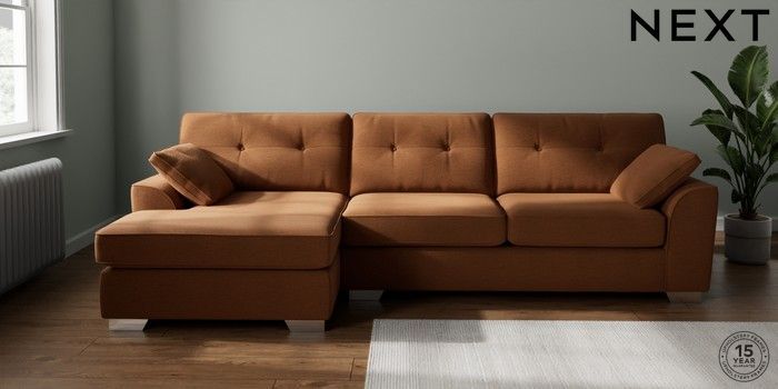 7.2.10 Stamford Buttoned Back Large Sofa Chaise - Left Hand Ripple Chenille Mid Rust Brown Large Square Angle - Chrome Metal | Made Click here to use our website with more accessibility support, for example screen readers