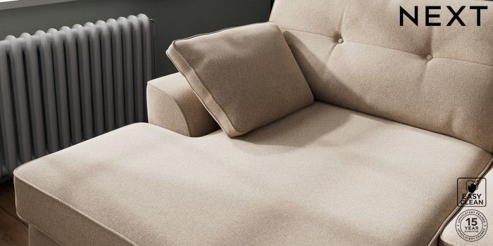 7.2.10 Stamford Buttoned Back Large Sofa Chaise - Left Hand Tweedy Blend Easy Clean Light Dove Natural Large Square Angle - Mid | Made Click here to use our website with more accessibility support, for example screen readers