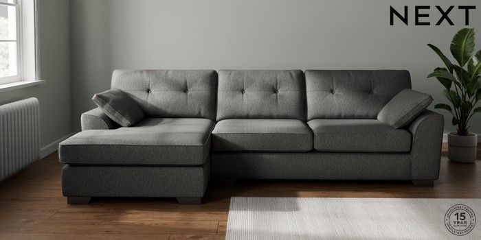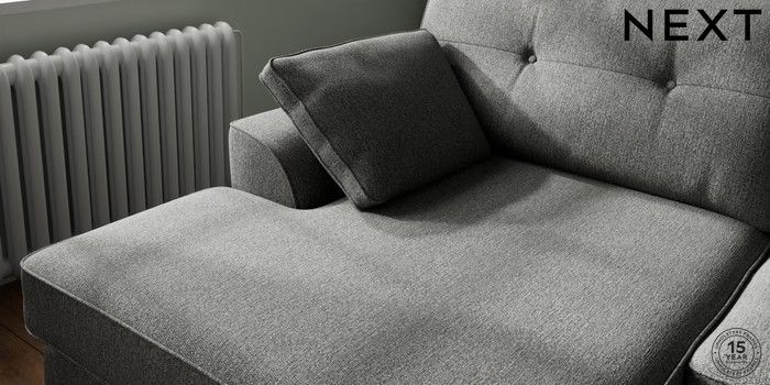 7.2.10 Stamford Buttoned Back Large Sofa Chaise - Left Hand Tweedy Chenille Dark Grey Large Square Angle - Gunmetal | Made Click here to use our website with more accessibility support, for example screen readers