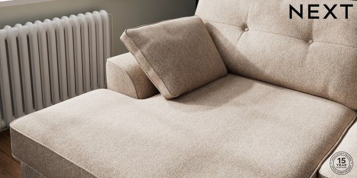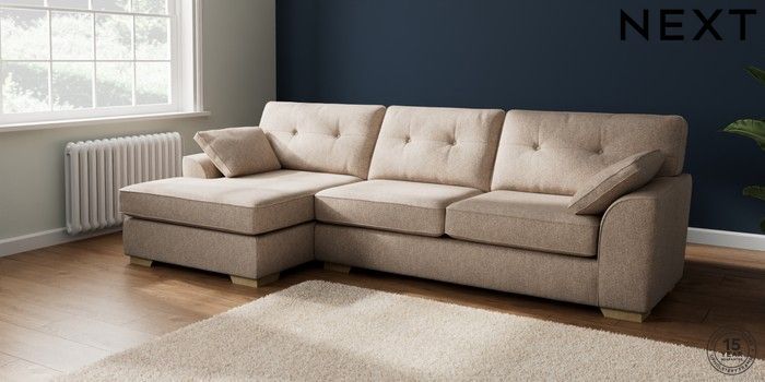 7.2.10 Stamford Buttoned Back Large Sofa Chaise - Left Hand Tweedy Chenille Mid Natural Large Square Angle - Light | Made Click here to use our website with more accessibility support, for example screen readers