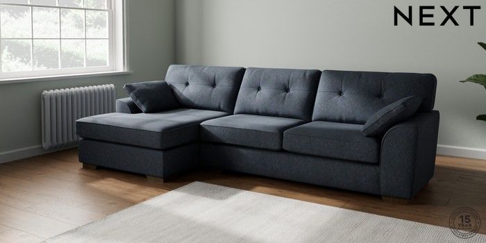 7.2.10 Stamford Buttoned Back Large Sofa Chaise - Left Hand Tweedy Chenille Navy Blue Large Square Angle - Mid | Made Click here to use our website with more accessibility support, for example screen readers
