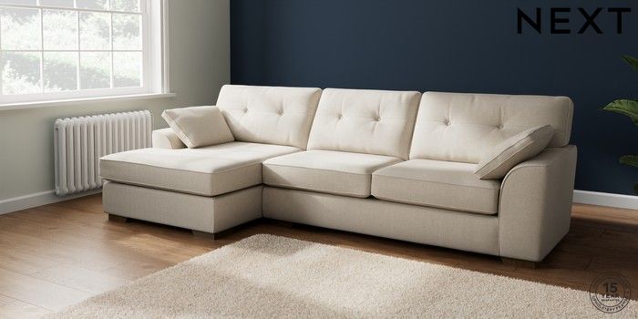 7.2.10 Stamford Buttoned Back Large Sofa Chaise - Left Hand Tweedy Chenille Oyster Large Square Angle - Mid | Made Click here to use our website with more accessibility support, for example screen readers