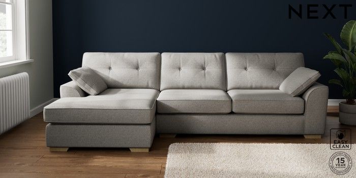 7.2.10 Stamford Buttoned Back Large Sofa Chaise - Left Hand Woven Chenille Easy Clean Light Grey Large Square Angle - Light | Made Click here to use our website with more accessibility support, for example screen readers