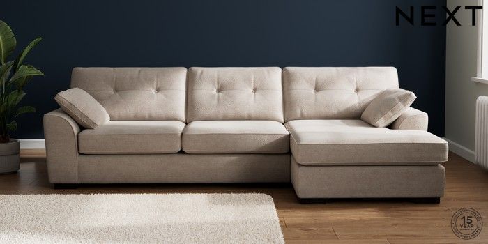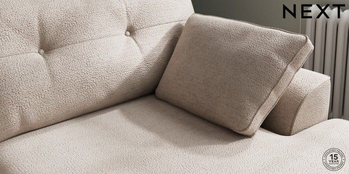 7.2.10 Stamford Buttoned Back Large Sofa Chaise - Right Hand Boucle Chenille Light Natural Large Square Angle - Dark | Made Click here to use our website with more accessibility support, for example screen readers