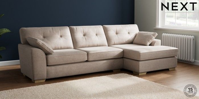 7.2.10 Stamford Buttoned Back Large Sofa Chaise - Right Hand Boucle Chenille Light Natural Large Square Angle - Light | Made Click here to use our website with more accessibility support, for example screen readers