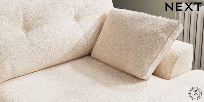 7.2.10 Stamford Buttoned Back Large Sofa Chaise - Right Hand Boucle Chenille Oyster Large Square Angle - Dark | Made Click here to use our website with more accessibility support, for example screen readers