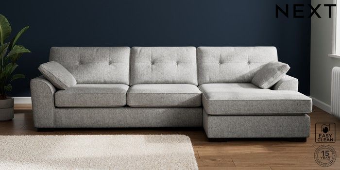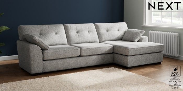7.2.10 Stamford Buttoned Back Large Sofa Chaise - Right Hand Chunky Boucle Easy Clean Light Grey Large Square Angle - Dark | Made Click here to use our website with more accessibility support, for example screen readers