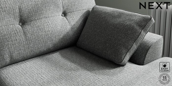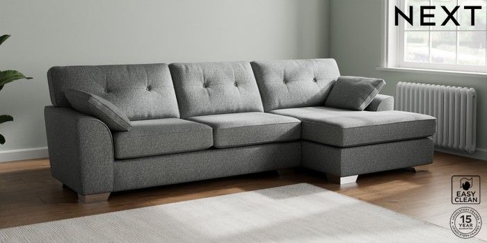7.2.10 Stamford Buttoned Back Large Sofa Chaise - Right Hand Chunky Boucle Easy Clean Mid Grey Large Square Angle - Chrome Metal | Made Click here to use our website with more accessibility support, for example screen readers