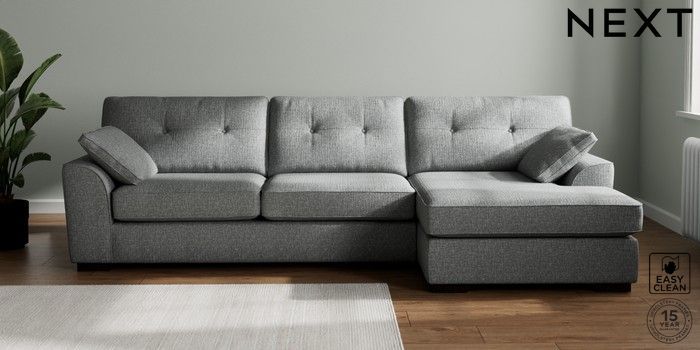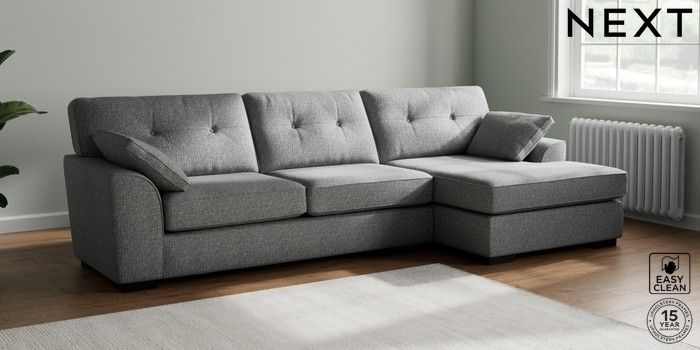 7.2.10 Stamford Buttoned Back Large Sofa Chaise - Right Hand Chunky Boucle Easy Clean Mid Grey Large Square Angle - Dark | Made Click here to use our website with more accessibility support, for example screen readers