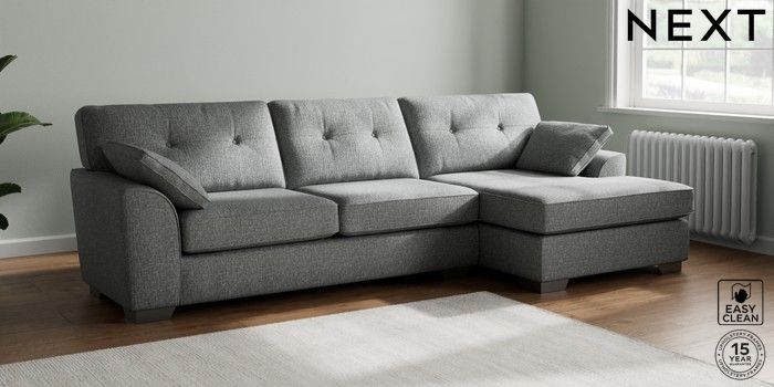 7.2.10 Stamford Buttoned Back Large Sofa Chaise - Right Hand Chunky Boucle Easy Clean Mid Grey Large Square Angle - Gunmetal | Made Click here to use our website with more accessibility support, for example screen readers