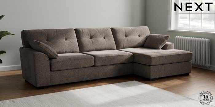7.2.10 Stamford Buttoned Back Large Sofa Chaise - Right Hand Chunky Chenille Mink Brown Large Square Angle - Dark | Made Click here to use our website with more accessibility support, for example screen readers
