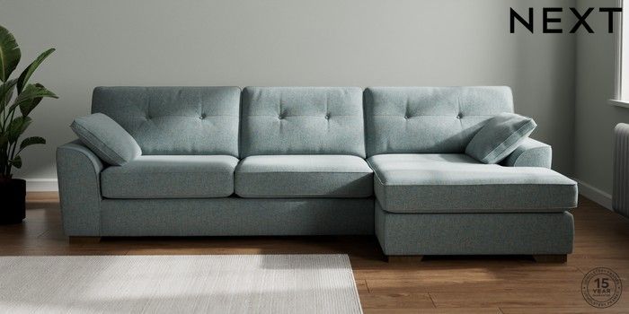 7.2.10 Stamford Buttoned Back Large Sofa Chaise - Right Hand Chunky Marl Mid Blue Large Square Angle - Mid | Made Click here to use our website with more accessibility support, for example screen readers