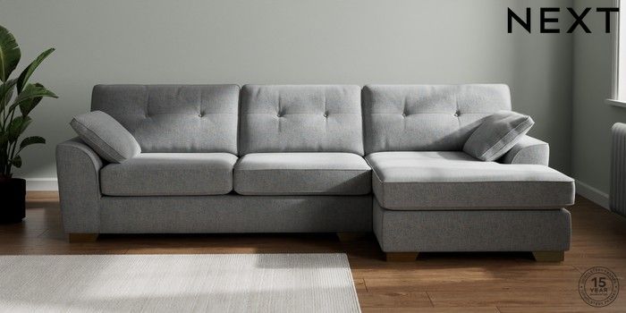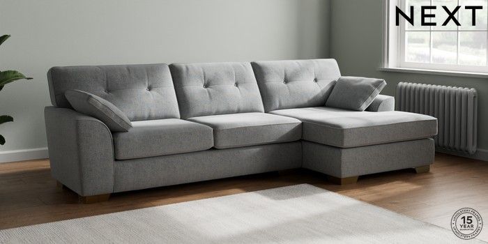 7.2.10 Stamford Buttoned Back Large Sofa Chaise - Right Hand Chunky Marl Mid Grey Large Square Angle - Brushed Brass | Made Click here to use our website with more accessibility support, for example screen readers