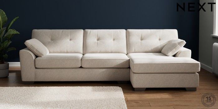 7.2.10 Stamford Buttoned Back Large Sofa Chaise - Right Hand Chunky Marl Oyster Large Square Angle - Gunmetal | Made Click here to use our website with more accessibility support, for example screen readers