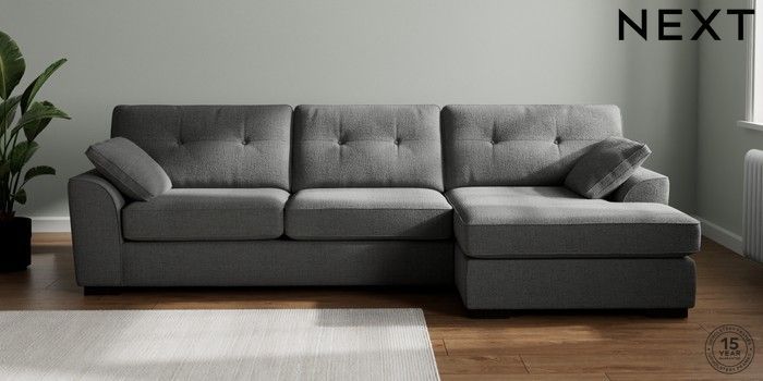 7.2.10 Stamford Buttoned Back Large Sofa Chaise - Right Hand Chunky Texture Dark Grey Large Square Angle - Dark | Made Click here to use our website with more accessibility support, for example screen readers