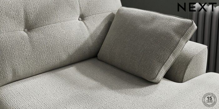 7.2.10 Stamford Buttoned Back Large Sofa Chaise - Right Hand Chunky Texture Dove Large Square Angle - Brushed Brass | Made Click here to use our website with more accessibility support, for example screen readers