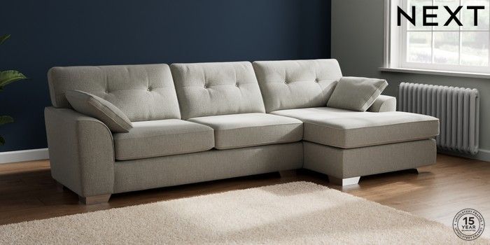 7.2.10 Stamford Buttoned Back Large Sofa Chaise - Right Hand Chunky Texture Dove Large Square Angle - Chrome Metal | Made Click here to use our website with more accessibility support, for example screen readers