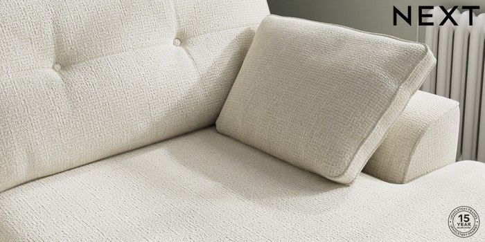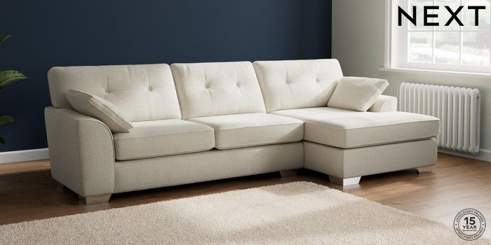 7.2.10 Stamford Buttoned Back Large Sofa Chaise - Right Hand Chunky Texture Oyster Large Square Angle - Chrome Metal | Made Click here to use our website with more accessibility support, for example screen readers