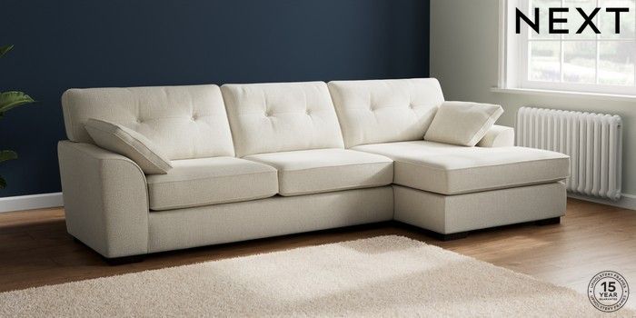 7.2.10 Stamford Buttoned Back Large Sofa Chaise - Right Hand Chunky Texture Oyster Large Square Angle - Dark | Made Click here to use our website with more accessibility support, for example screen readers