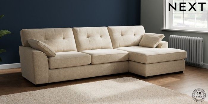 7.2.10 Stamford Buttoned Back Large Sofa Chaise - Right Hand Chunky Weave Cream Large Square Angle - Dark | Made Click here to use our website with more accessibility support, for example screen readers