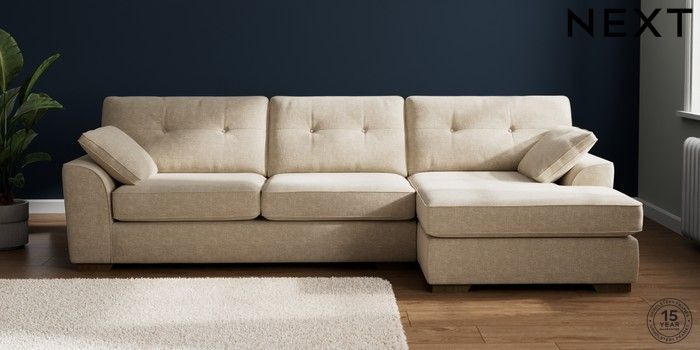 7.2.10 Stamford Buttoned Back Large Sofa Chaise - Right Hand Chunky Weave Cream Large Square Angle - Mid | Made Click here to use our website with more accessibility support, for example screen readers