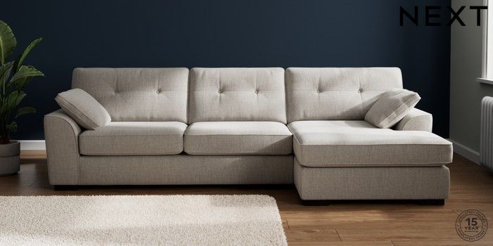 7.2.10 Stamford Buttoned Back Large Sofa Chaise - Right Hand Chunky Weave Dove Grey Large Square Angle - Dark | Made Click here to use our website with more accessibility support, for example screen readers
