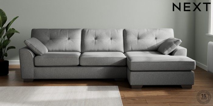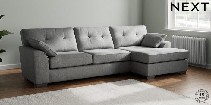 7.2.10 Stamford Buttoned Back Large Sofa Chaise - Right Hand Chunky Weave Mid Grey Large Square Angle - Gunmetal | Made Click here to use our website with more accessibility support, for example screen readers