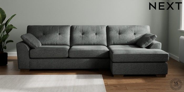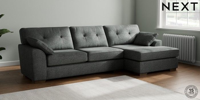7.2.10 Stamford Buttoned Back Large Sofa Chaise - Right Hand Cotswold Chenille Dark Grey Large Square Angle - Mid | Made Click here to use our website with more accessibility support, for example screen readers