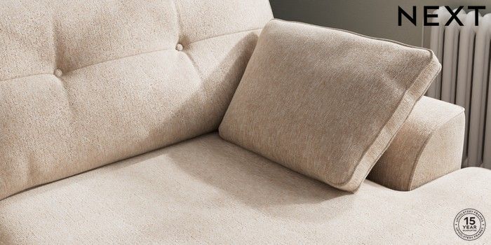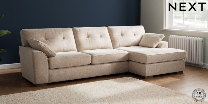7.2.10 Stamford Buttoned Back Large Sofa Chaise - Right Hand Cotswold Chenille Light Natural Large Square Angle - Mid | Made Click here to use our website with more accessibility support, for example screen readers