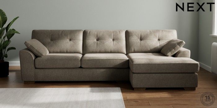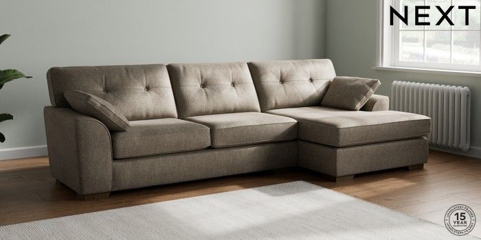 7.2.10 Stamford Buttoned Back Large Sofa Chaise - Right Hand Cotswold Chenille Mid Mink Brown Large Square Angle - Mid | Made Click here to use our website with more accessibility support, for example screen readers