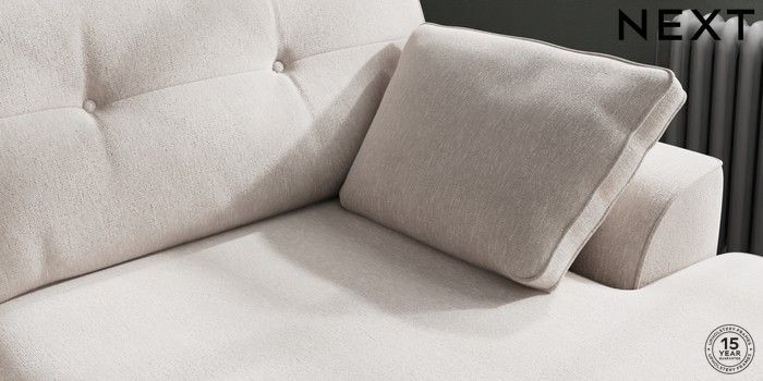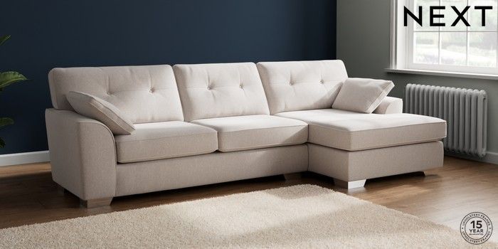 7.2.10 Stamford Buttoned Back Large Sofa Chaise - Right Hand Cotswold Chenille Oyster Large Square Angle - Chrome Metal | Made Click here to use our website with more accessibility support, for example screen readers