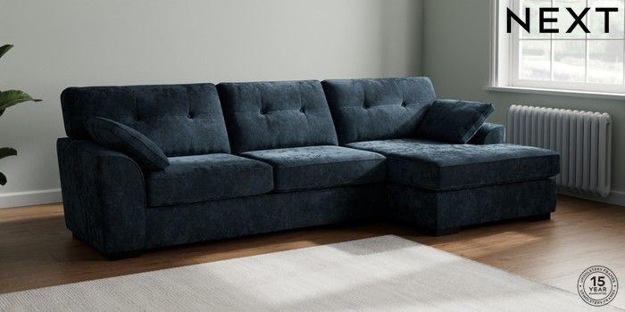 7.2.10 Stamford Buttoned Back Large Sofa Chaise - Right Hand Distressed Velour Midnight Blue Large Square Angle - Dark | Made Click here to use our website with more accessibility support, for example screen readers
