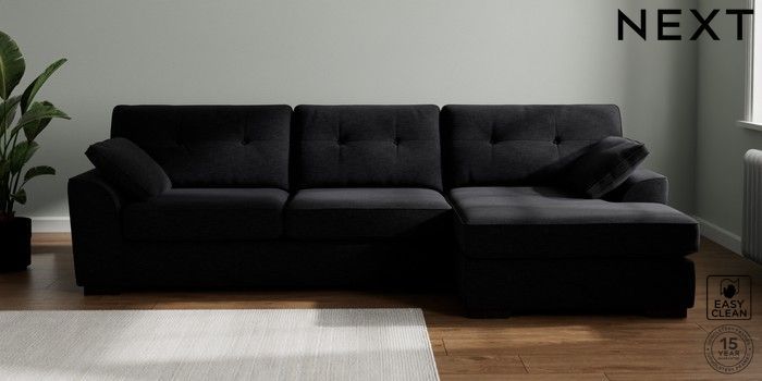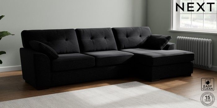 7.2.10 Stamford Buttoned Back Large Sofa Chaise - Right Hand Fine Chenille Easy Clean Black Large Square Angle - Dark | Made Click here to use our website with more accessibility support, for example screen readers