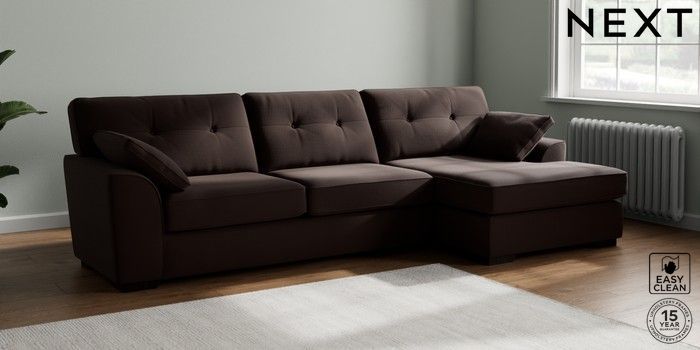 7.2.10 Stamford Buttoned Back Large Sofa Chaise - Right Hand Fine Chenille Easy Clean Chocolate Brown Large Square Angle - Dark | Made Click here to use our website with more accessibility support, for example screen readers