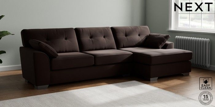 7.2.10 Stamford Buttoned Back Large Sofa Chaise - Right Hand Fine Chenille Easy Clean Chocolate Brown Large Square Angle - Gunmetal | Made Click here to use our website with more accessibility support, for example screen readers